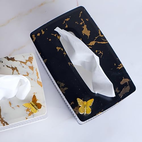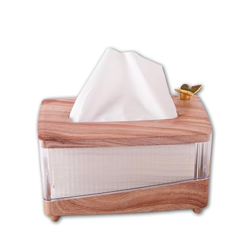 Generic - حامل مناديل مزخرف - لمسة نهائية رخامية فاخرة بلمسة ذهبية وزخارف فراشة، يمزج بين دفء الخشب الطبيعي مع الاكريليك الشفاف لإضفاء لمسة داخلية أنيقة (خشبي)