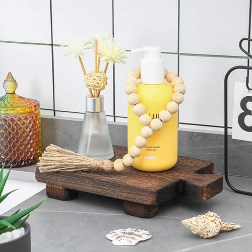 Lifegili - صينية ديكور زخرفية خشبية مع مقبض طبق صابون أطباق طاولة صغيرة للمزرعة غرفة المعيشة شموع للوجبات والكنبة والمطبخ مقاس 23 × 15 5 سم لون بني