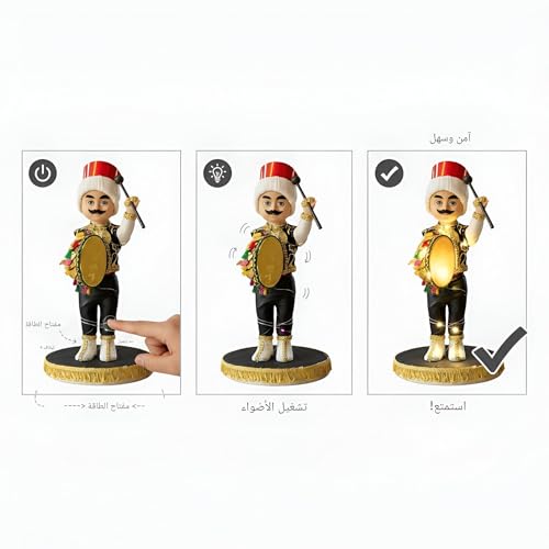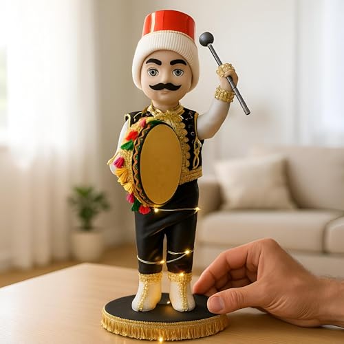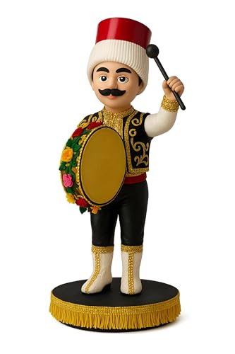 Generic - درامر تركي مزخرف - منحوتة سيراميك مفصلة مع فاس احمر، ملابس مزينة بالذهب، طبلة زهور ملونة، وقاعدة مصقولة للحصول على لمسات منزلية ثقافية أصلية