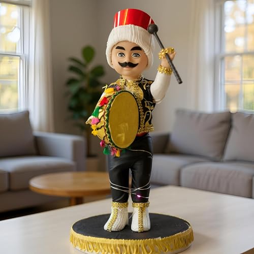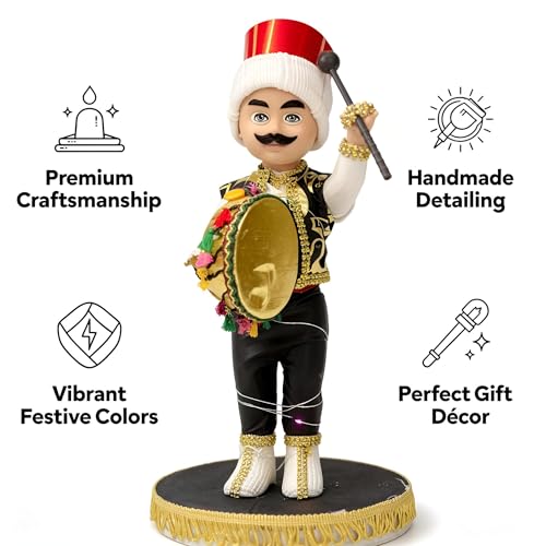 - يقف هذا المجسم بأناقة على قاعدة مزينة بشراشيب ذهبية، ويجسد روح الاحتفال وهو مثالي للعرض على الرفوف أو الرفوف أو الخزانات، مما يضيف الدفء والعمق الثقافي إلى أي غرفة.