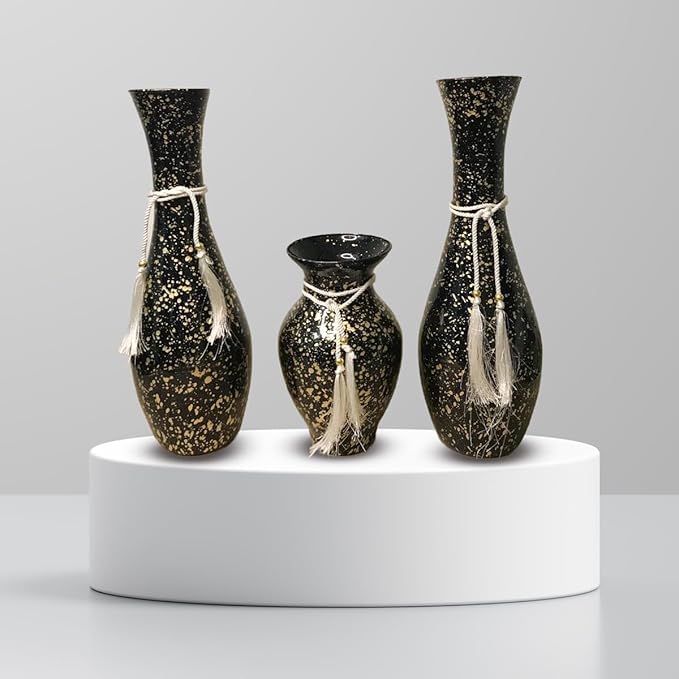 Generic - فازة ديكور مكونة من 3 قطع مصنوعة من الزجاج مناسب لجميع انماط الديكور لعشب البامباس والزهور المجففة، اكسسوار ديكور مناسب لغرفة المعيشة وغرفة النوم والمنزل بشكل مودرن (اسود * دهبى)