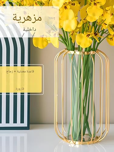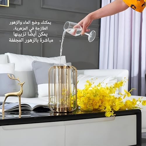 - متعددة الاستخدامات في الاستخدام، هذه المزهرية الذهبية مثالية لترتيب الزهور الطازجة أو الاصطناعية والنباتات المائية وتصميمات الزهور المجففة؛ ويمكن أيضًا إعادة استخدامها كفانوس للشموع أو اللمسات الزخرفية أو غيرها من المشاريع الحرفية الإبداعية لتعزيز أي مساحة.
