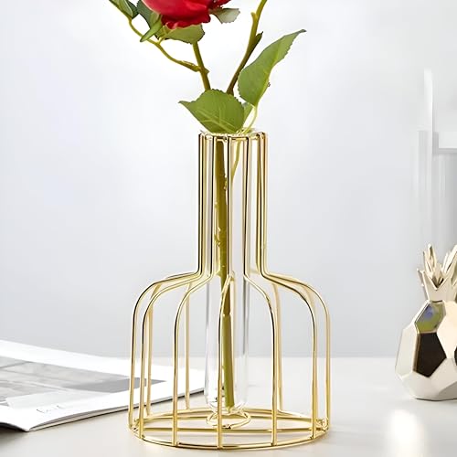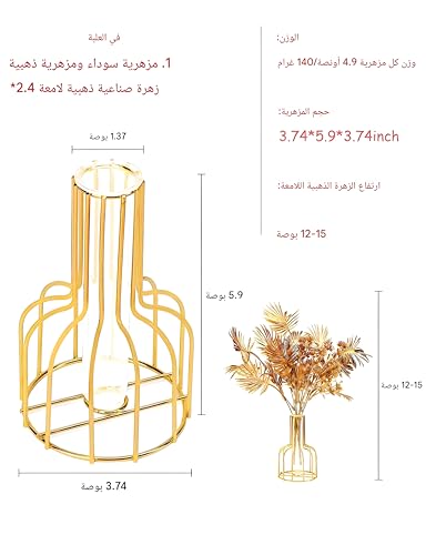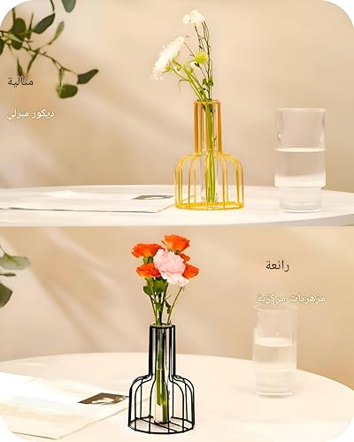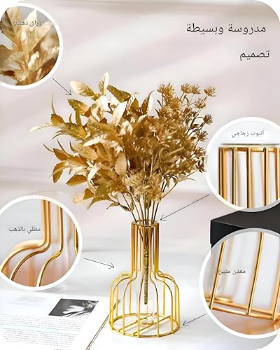 - نمط تصميم عصري وأنيق وفاخر: تتكون المزهرية من خطوط بأشكال هندسية ذهبية أو سوداء، حيث يتم وضع مزهرية زجاجية شفافة وشفافة، مع زهور صناعية مصنوعة من البلاستيك، ولكن بمظهر ذهبي، مناسبة بشكل خاص لتناسب المزهرية.