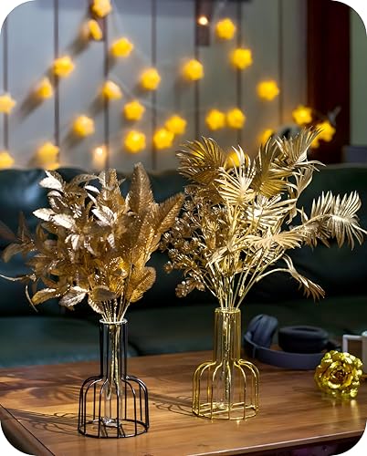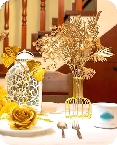 Generic - مزهرية مزخرفة - عرض زهور ذهبية صغيرة فريدة من نوعها لتزيين المنزل، مثالية لحفلات الزفاف أو الهدايا أو قطع مركزية لطاولة القهوة لإضفاء إشراقة على المساحات (كبيرة)