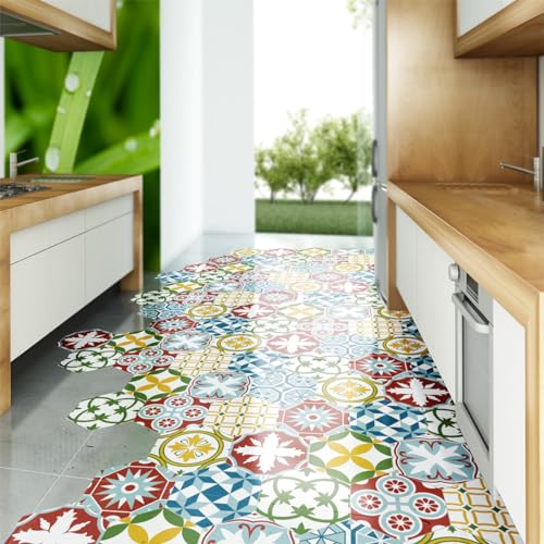 Generic - بلاط لاصق لديكور الأرضيات من الفينيل - نمط انريشيا (عبوة من 30 قطعة، مقاس كل قطعة 20 × 20 سم)