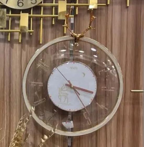 Generic - ساعة حائط ديكور بتصميم قرن الغزال، زخرفة ذهبية، وجه دائري 35 سم