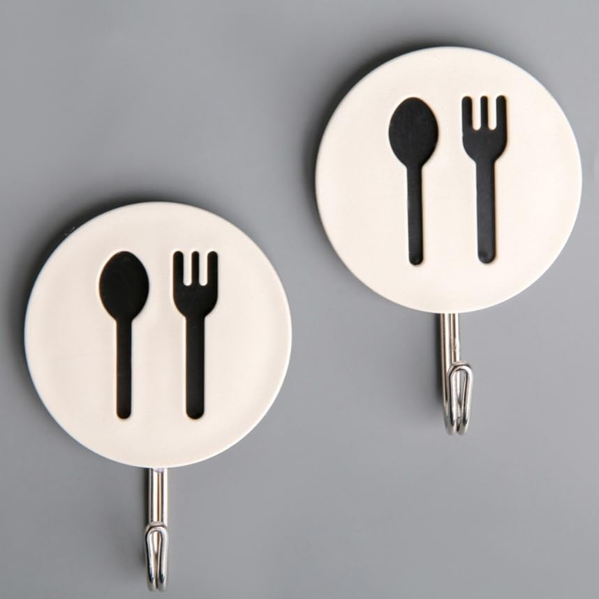 Generic - خطافات حائط مزخرفة بتصميم ادوات تناول الطعام، قاعدة دائرية، ذاتية اللصق، حوامل مناشف المطبخ، مجموعة من قطعتين