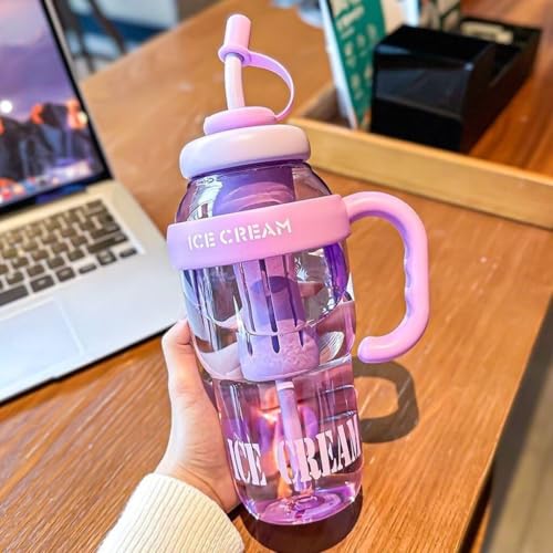 Generic - زجاجة مياه مزخرفة - تصميم ايس كريم فريد مع مقبض قوي وغطاء آمن، مصممة لإضافة الزهور أو شرائح الحمضيات، بألوان زاهية متعددة