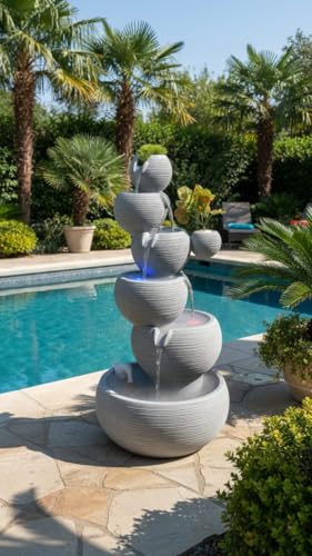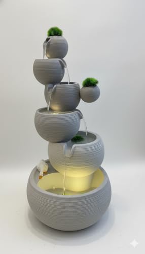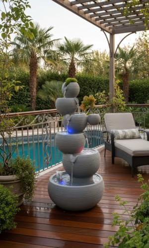 Generic - نافورة مياه ديكور ، فايبر جلاس، ، تصميم كروي متدرج مع إضاءة LED، 120×65 سم، مع نظام دورة مياه مغلقة (لا تحتاج اللي وصله خارجيه ) (رمادي)
