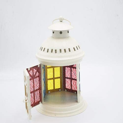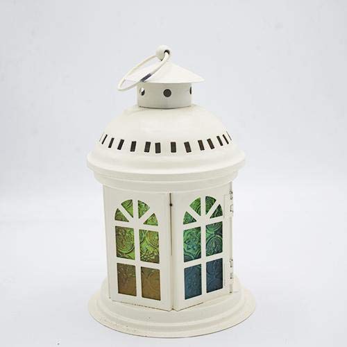Other - فانوس رمضان بشمعه معدن مزخرف ابيض زجاج ملون شكل مختلف و تصميم متميز شكل رائع للديكور