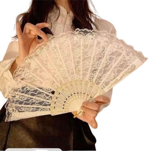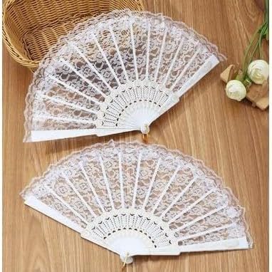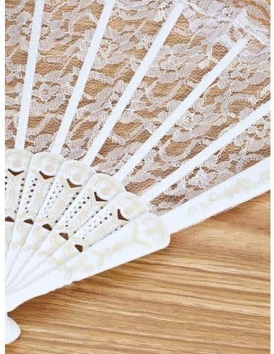 Generic - مروحة يد دانتيل أبيض مزخرفة، تصميم كلاسيكي أنيق، مثالية للمناسبات