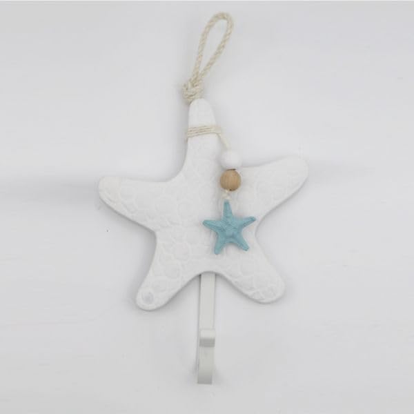 Generic - خطاف حائط مزخرف على شكل نجم البحر الأبيض مع زينة تركواز وحبل للتعليق