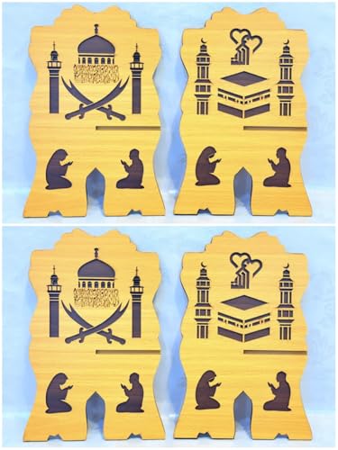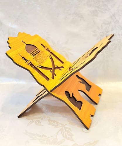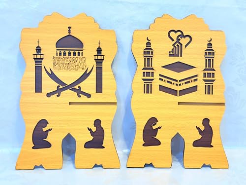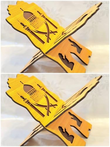 Generic - حامل مصحف خشبي مزخرف – حامل كتب ممتاز بطبقتين للمصحف، عملي وأنيق، إكسسوار إسلامي راقٍ (خشبي – قطعة واحدة)