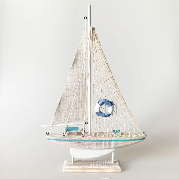 Generic - نموذج مركب شراعي خشبي مزخرف، ابيض مع لمسات زرقاء، ديكور منزلي بحري، 30 سم