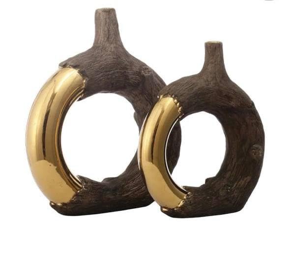 Generic - فازة خشبية مزخرفة بلمسات ذهبية، 2 قطعة داخل العبوة