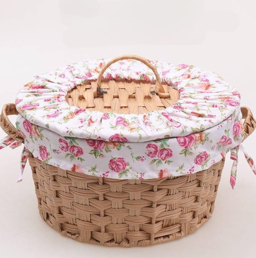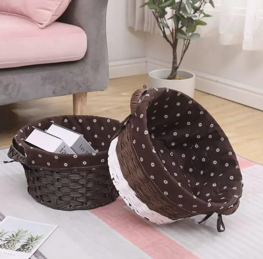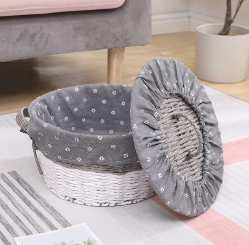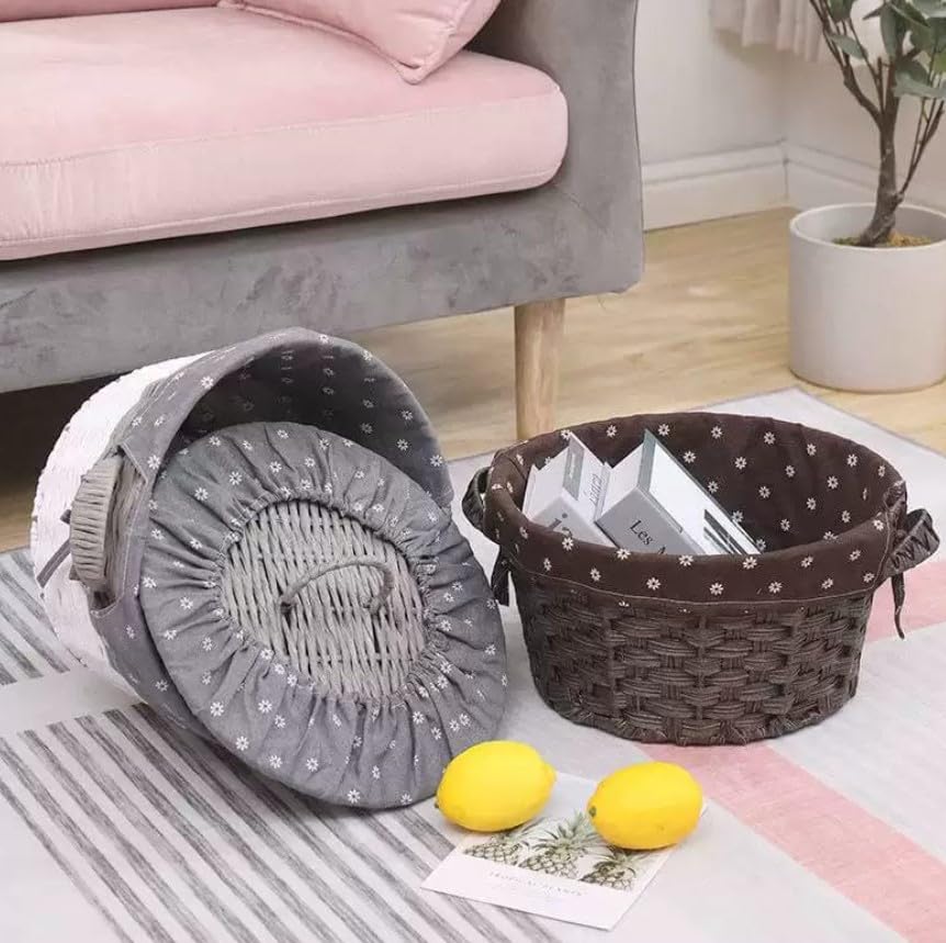 Generic - سلة تخزين منسوجة مزخرفة مع بطانة قماشية بنمط زهور، متوفرة بأنماط رمادية وزهرية