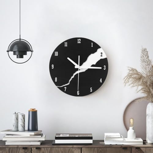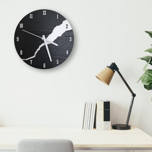 DECORAY - ساعة حائط بتاثير خشبي مع ارقام من ديكوراي، ساعة حائط حديثة صامتة 30 سم - ساعة حائط بتصميم جديد باللونين الاسود والابيض للمنزل وغرفة المعيشة والمطبخ وغرفة النوم