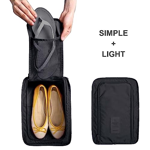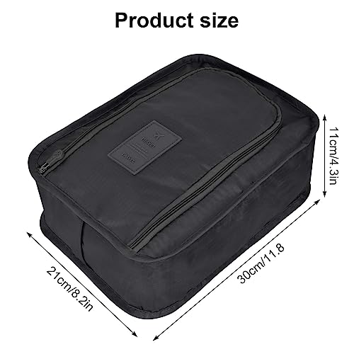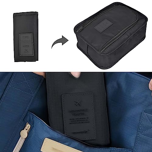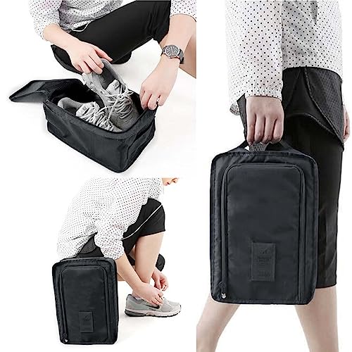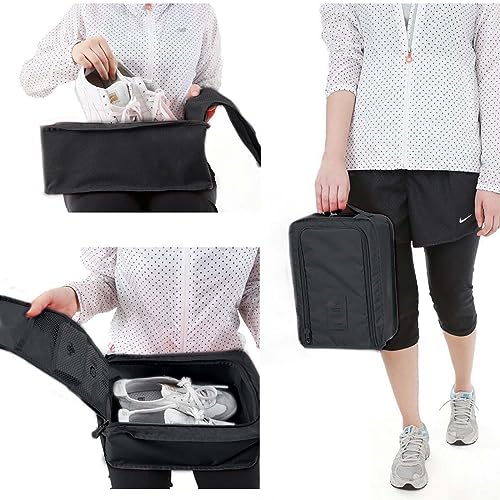 DecorDwell - شنطة أحذية للسفر، شنطة أحذية متعددة الطبقات للسفر، شنطة أحذية مقاومة للماء بسوستة للإغلاق، شنطة أحذية للسفر، قطعتين، لون أسود