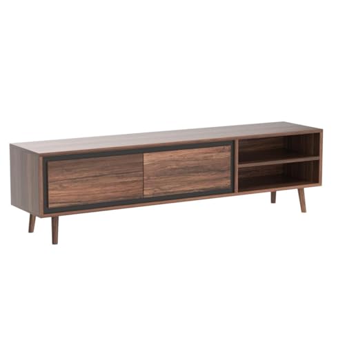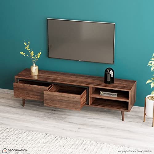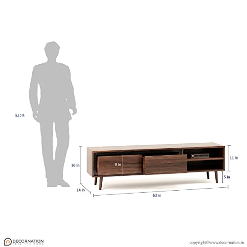 DecorNation - طاولة وحدة تلفزيون اكيوا من ديكورنيشن - خشب صلب، مساحة تخزين واحدة بدرجين ورف لغرفة المعيشة وغرفة النوم، حامل أثاث مكتب (160× 36× 41 سم، لون بلمسة نهائية طبيعية)