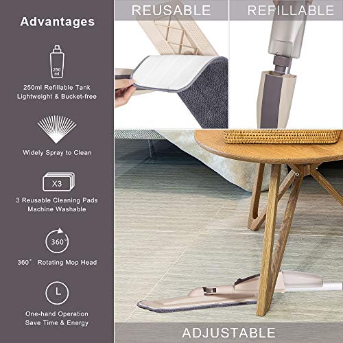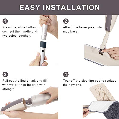 - 【تصميم مريح】: يوفر لك التصميم المريح لممسحة رش الأرضيات الخشبية الصلبة وقضيب الألومنيوم المتين أفضل راحة أثناء حمل الممسحة وتشغيلها. ما عليك سوى الضغط على الزناد بيد واحدة، ويمكنك الوقوف وتنظيف الأرض دون ثني خصرك. حتى الأطفال والنساء الحوامل يمكنهم استخدام ممسحة الرش هذه بسهولة.