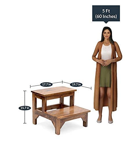 Decorvatsa - كرسي خشب شيشام متعدد الأغراض من ديكورفاتسا للمطبخ ومسند قدم خشبي لغرفة المعيشة والمنزل (لمسة نهائية من خشب الساج)