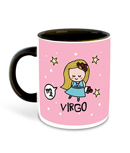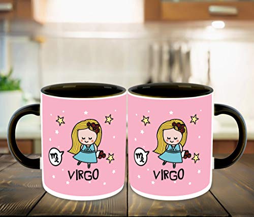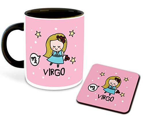 DecorVecor - كوب قهوة سيراميك بلون داخلي اسود ومطبوع عليه برج العذراء من ديكور فيكور مع قاعدة مج | شرب | حليب - افضل هدية | الابراج الفلكية والعذراء والابراج متعدد 4