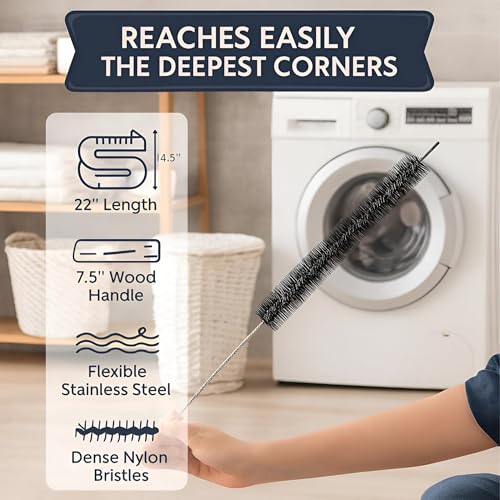 Generic - تنظيف عميق - فرشاة تصريف شديدة التحمل مصممة للغسالات وانابيب الحوض، مجهزة بقضيب معدني مرن 75 سم ومقبض خشبي لمعالجة الانسدادات الصعبة في المنزل. (قطعة واحدة)