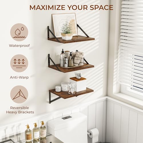 Heimlove - رفوف حائط عميقة بتصميم عائم مصنوعة من الخشب مع حوامل معدنية، مناسبة لغرفة المعيشة والمطبخ والمكتب وغرفة النوم، بني ريفي، طقم من 3 رفوف 30 سم × 40 سم (عمق×ارتفاع)