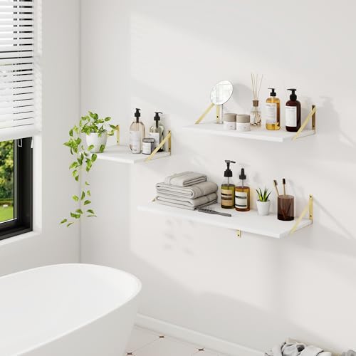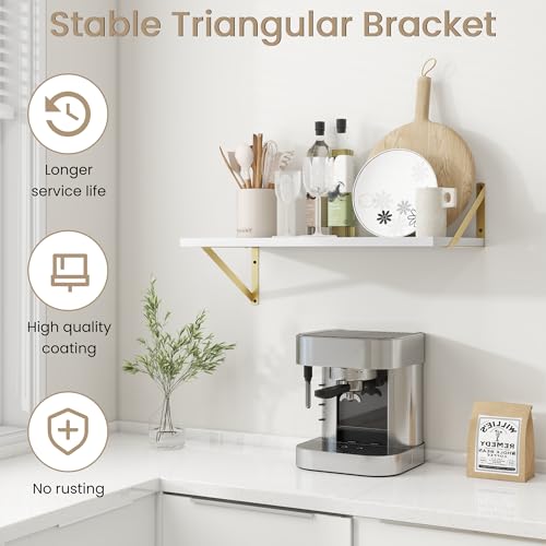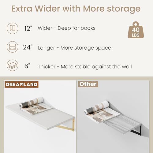 Dreamland - أرفف معلقة عميقة للجدار مثبتة على الحائط، مجموعة رفوف معلقة كبيرة لرف الكتب وغرفة المعيشة وغرفة النوم والمنزل والمكتب والحمام من 2 قطعة مقاس 30 × 40 سم بلون أبيض وذهبي