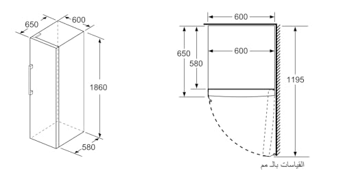 - العرض : 650 mm العمق : 600 mm الارتفاع : 1860 mm