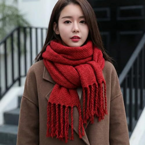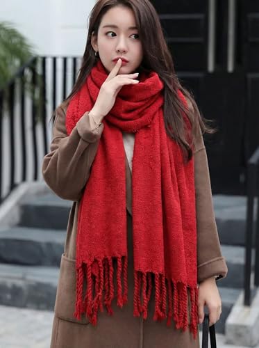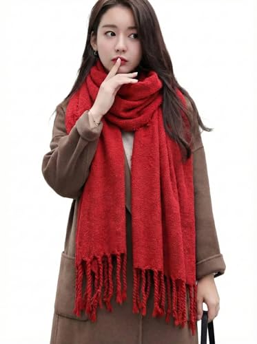 Generic - سكارف شتوي رمزي بلون احمر غامق - لف دافئ منسوج ناعم مع شراشيب