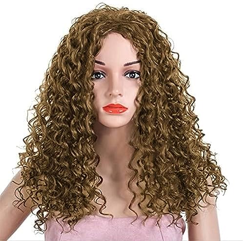 Generic - باروكة من شعر طبيعي ناعم وطويل ومجعد بتمويجات واسعة وتصميم كاب للنساء والبنات (58 سم، لون بني فاتح)
