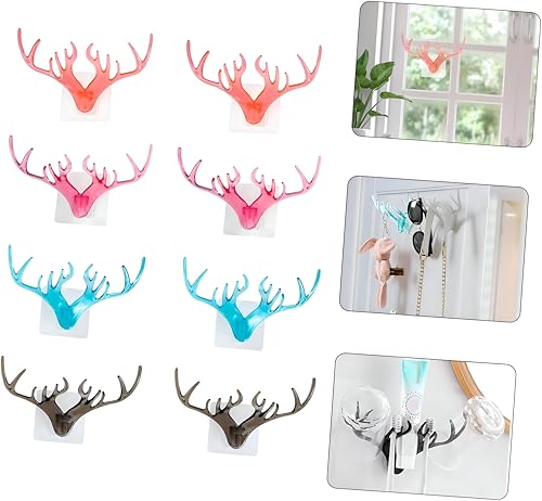 Generic - خطاف حائط مزدوج الرأس مصمم على شكل قرون الغزلان لتعليق المعاطف، حامل معاطف لاصق شفاف للحيوانات الأليفة، حامل مناشف ورقية أكريليك قوي، مثالي للديكور المنزلي وتنظيم مساحتك (8 خطاف)