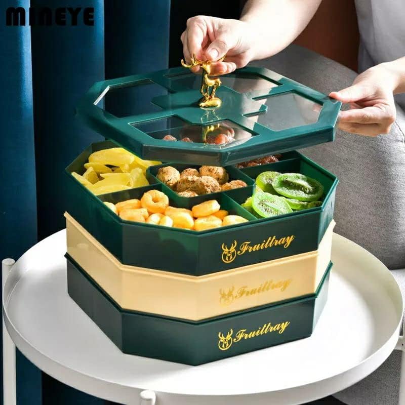 Generic - طبق تسالي الغزاله حاجة شياكة بغطاء شفاف ومقبض غزاله دهب، أكاسيا