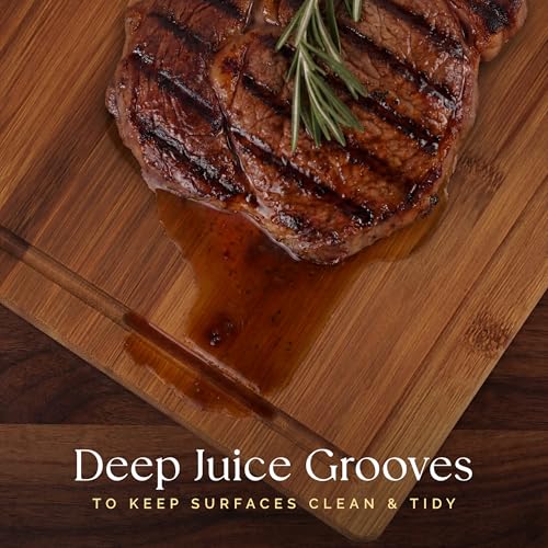 - 📏 خيار صديق للبيئة: لوح التقطيع الكبير المصنوع من الخيزران هذا ليس فقط شديد التحمل ولطيف على السكاكين الخاصة بك ولكنه أيضًا بديل أكثر صداقة للبيئة لألواح التقطيع الخشبية التقليدية. مثالي للطهاة المهتمين بالبيئة.