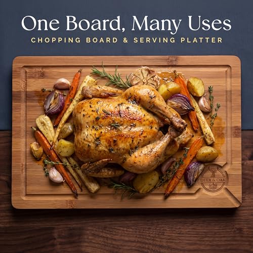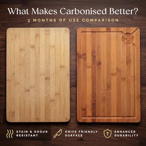 Deer & Oak - لوح تقطيع كبير من خشب الخيزران المكربن من دير اند اوك، لوح تقطيع للمطبخ من الخشب المزيت مسبقا لتقطيع اللحوم او الخضروات، مقاس 38 × 25 × 2 سم