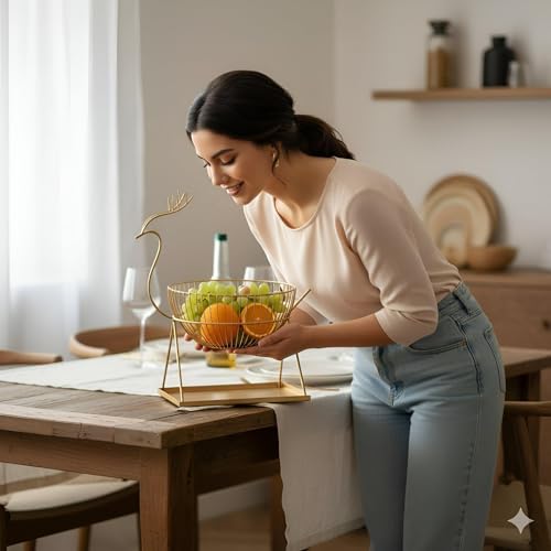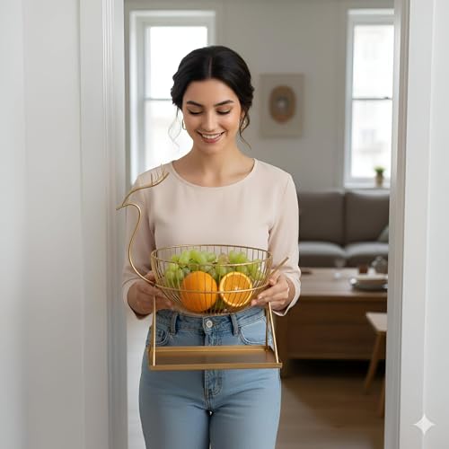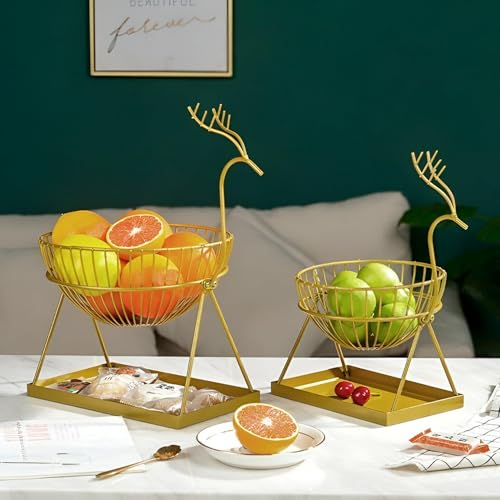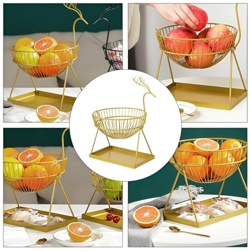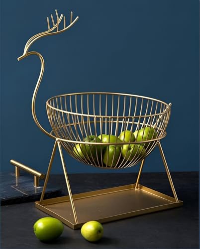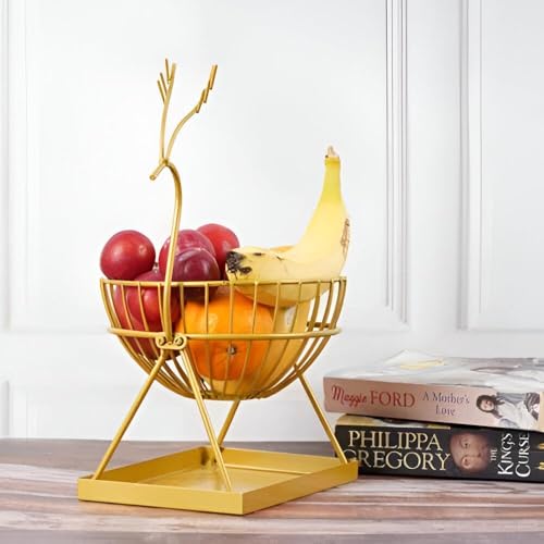 Generic - رف فاكهة على شكل غزال - رف فاكهة انيق مع طلاء معدني من الستانلس ستيل بلون ذهبي، تصميم عصري لعرض الفواكه في المطبخ او غرفة الطعام، ابعاد 30 × 25 سم