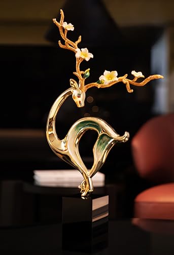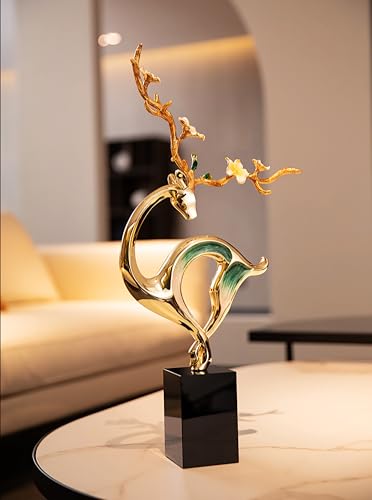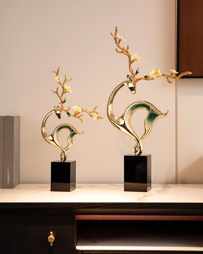 Generic - تمثال غزال لديكور المكتب المنزلي، منحوتات معدنية ابداعية قابلة للتجميع مع قاعدة كريستالية، زخرفة مثالية لسطح الطاولة لغرفة المعيشة، يتكون من قطعتين