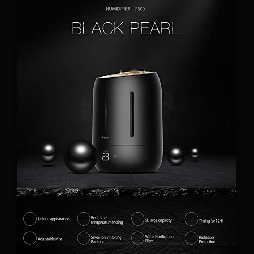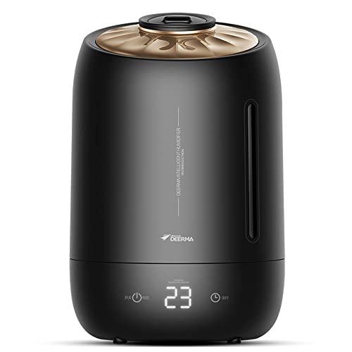 Deerma - مرطب بالموجات فوق الصوتية بموزع زيوت عطرية مع 3 تروس تشغيل باللمس مع وظيفة توقيت ذكي ورطوبة ثابتة للمنزل والمكتب F600S من ديرما، أسود، 5 ل