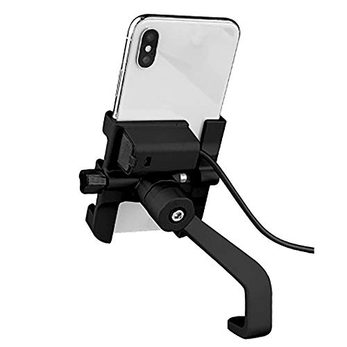 Deerno - حامل موبايل للدراجة النارية مصنوع من خليط معدني من الألومنيوم مزود بدعامة ونظام تحديد المواقع العالمي GPS لتحديد المواقع، حامل جوال دوار 360 درجة، شاحن USB سريع مناسب لمرآة الرؤية الخلفية اليسرى