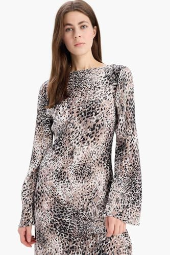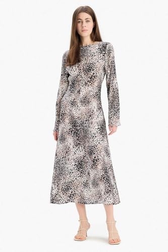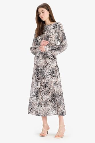DeFacto - فستان ايه لاين متوسط الطول بأكمام طويلة وقبة بكشكشة بتصميم حيوانات ماروكين من ديفاكتو