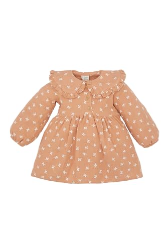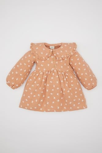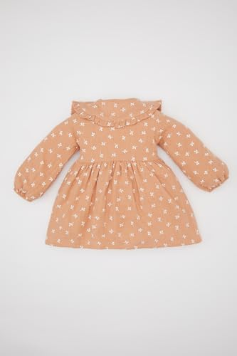 DeFacto - فستان بقصة عادية ورقبة واسعة وأكمام طويلة مع جيبة منسوجة للبنات البيبي من ديفاكتو، C2410A5، سادة