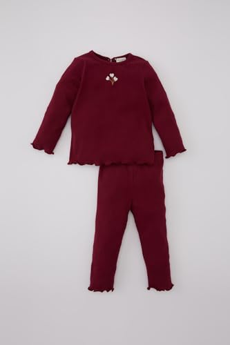 DeFacto - طقم ملابس للبنات الصغيرات بقصة عادية واكمام طويلة ورقبة دائرية من ديفاكتو Y1122A2 طقم ملابس للاطفال من قطعتين