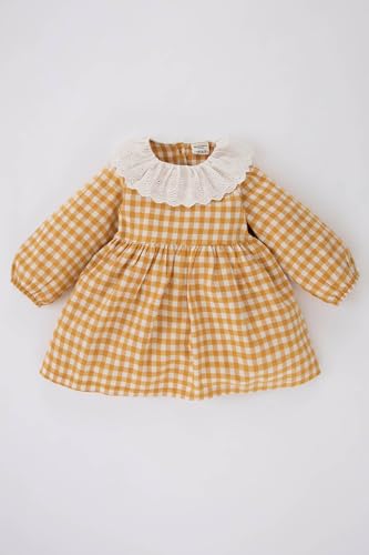 DeFacto - فستان منسوج من ديفاكتو بقصة عادية وأكمام طويلة ورقبة دانتيل للبنات الصغيرات Z5051A2