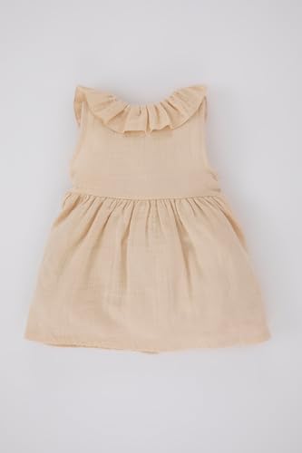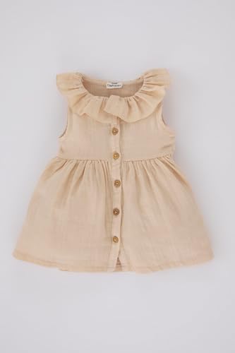 DeFacto - فستان من نسيج محبوك بقصة عادية وبدون أكمام ورقبة واسعة للبنات الصغيرات من ديفاكتو، موديل B0783A5