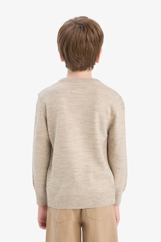 DeFacto - بلوفر تريكو A4992A8 كاجوال بقصة عادية ورقبة دائرية ضيقة وأكمام طويلة للأولاد من ديفاكتو، بلون بيج ميلانج، 5/6 سنوات