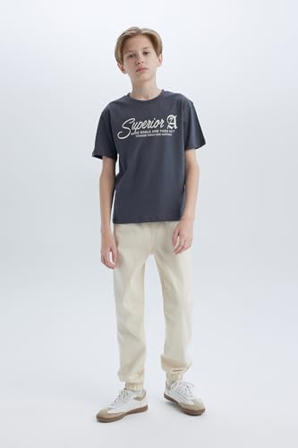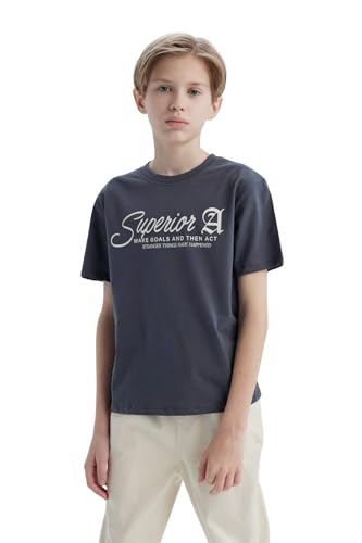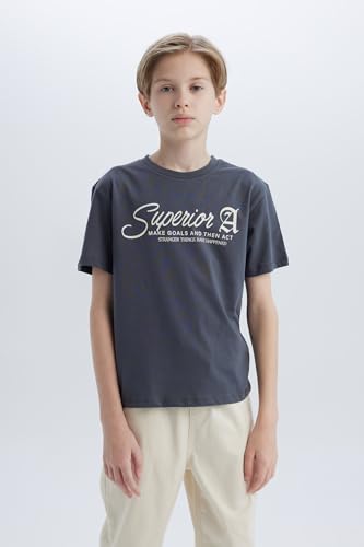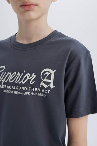 DeFacto - ديفاكتو تيشرت كاجوال للاولاد بقصة عادية ورقبة دائرية ضيقة واكمام قصيرة محبوك واكمام قصيرة، رصاصي 5/6 سنوات