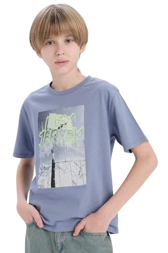DeFacto - ديفاكتو تيشرت كاجوال محبوك باكمام قصيرة ورقبة دائرية ضيقة وقصة عادية للاولاد بعمر 8/9 سنوات لون ازرق