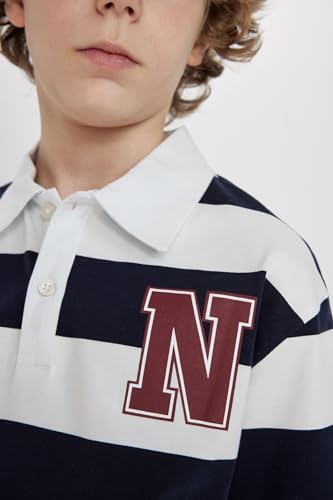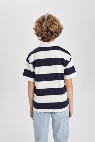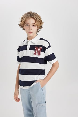 DeFacto - قميص بولو قطن 100% بقصة واسعة وقبة بولو وأكمام قصيرة للأولاد من ديفاكتو، لون أخضر/ موديل B9514A8