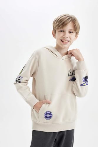 DeFacto - سويت شيرت منسوج بقصة عادية وغطاء للرأس واكمام طويلة للأولاد من ديفاكتو، موديل D3122A8